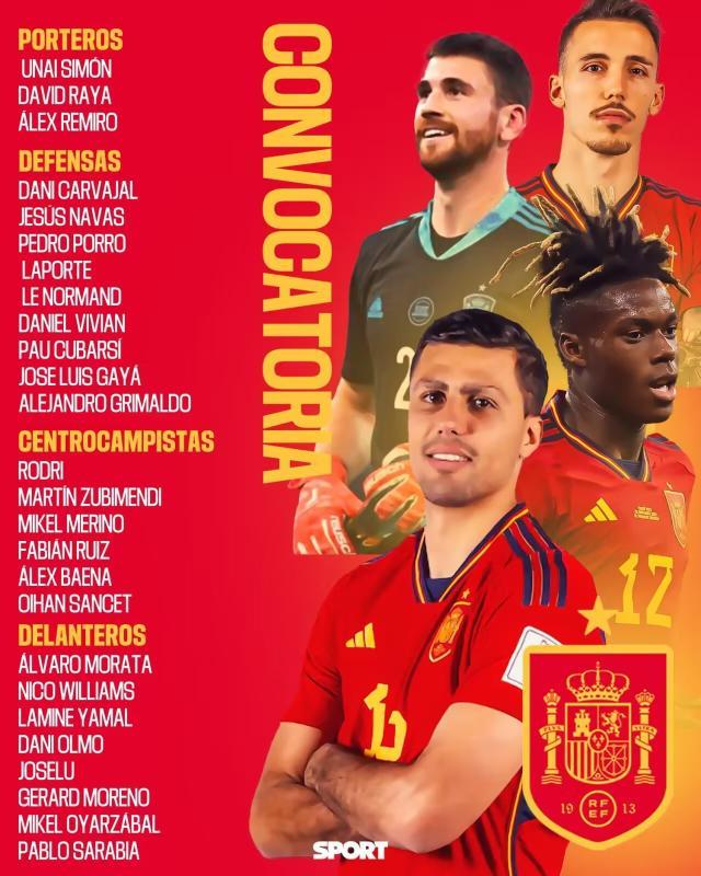 西班牙3月大名单:罗德里领衔,库巴西、亚马尔入选